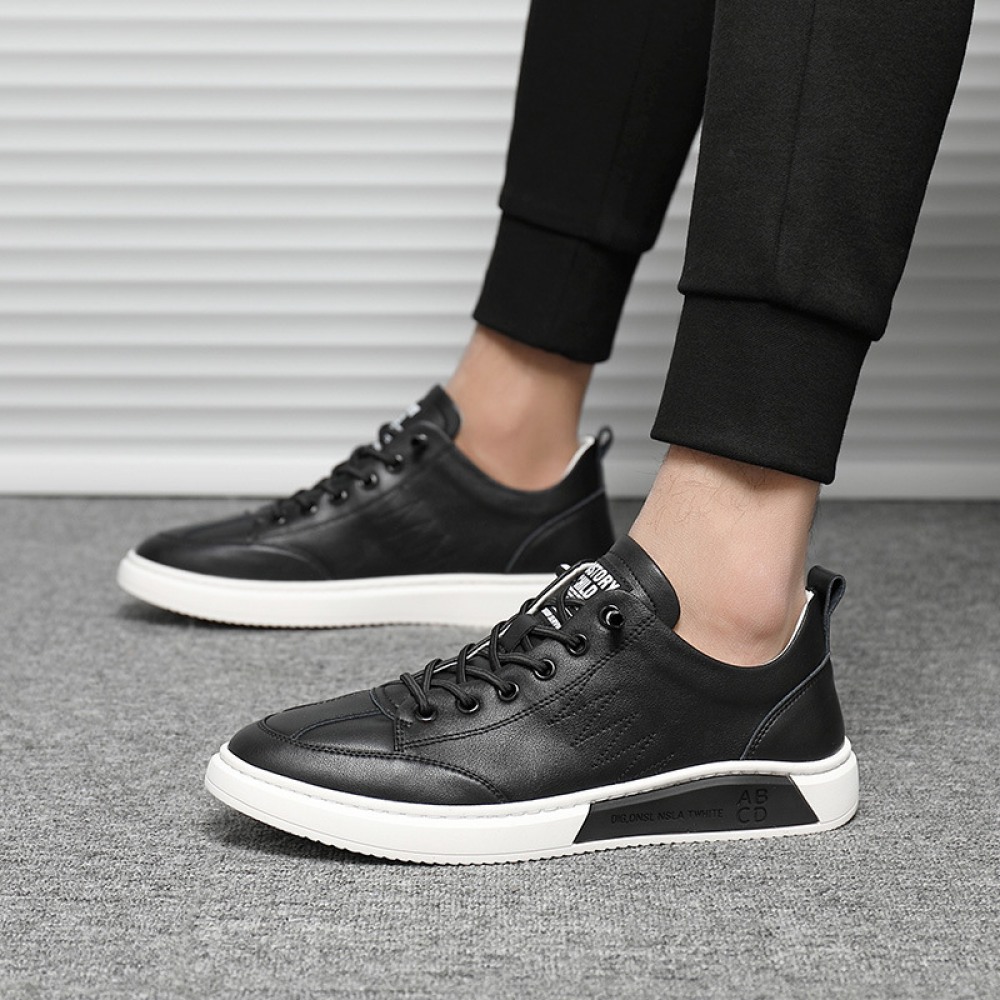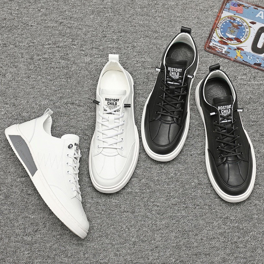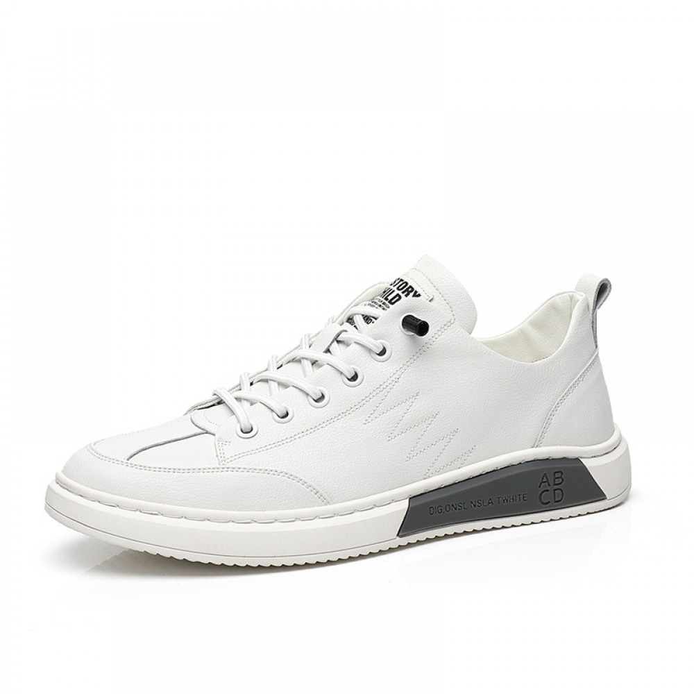Autumn New Men's Shoes Leather Casual White Shoes Hot Style Trendy Lace Up Sports Shoes