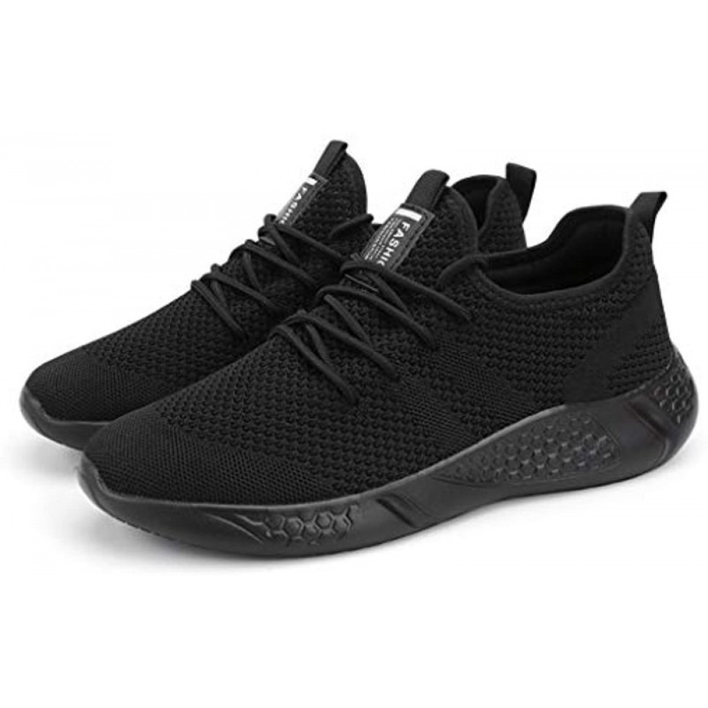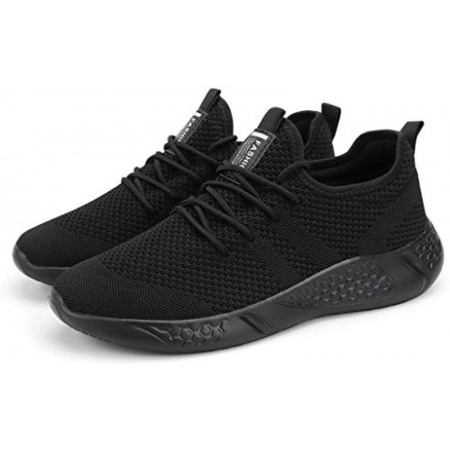 Mens Athletic Running Shoes Mesh Lightweight Sneakers Breathable Stylish Athletic Gym Shoes Casual Tennis Sport Shoes Black