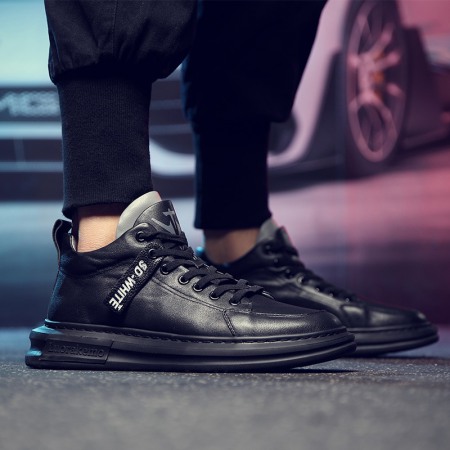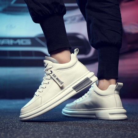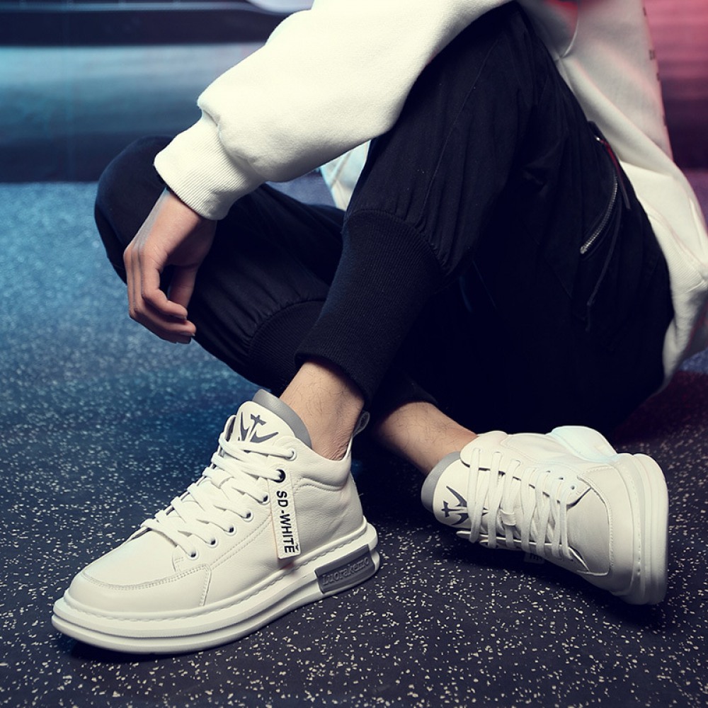 Autumn New Men's Shoes Leather Casual White Shoes Hot Style Trendy Lace Up Sports Shoes
